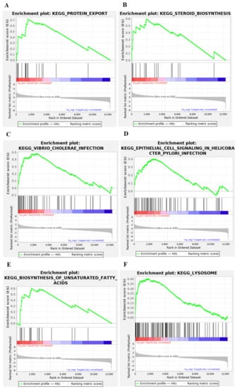 - Subramanian, A.; Tamayo, P.; Mootha, V.K.; Mukherjee, S.; Ebert, B.L.; Gillette, M.A.; Paulovich, A.; Pomeroy, S.L.; Golub, T.R.; Lander, E.S.; et al. Gene Set Enrichment Analysis: A Knowledge-Based Approach for Interpreting Genome-Wide Expression Profiles. Proc. Natl. Acad. Sci. USA 2005, 102, 15545–15550. [Google Scholar] [CrossRef] [PubMed] [Green Version]