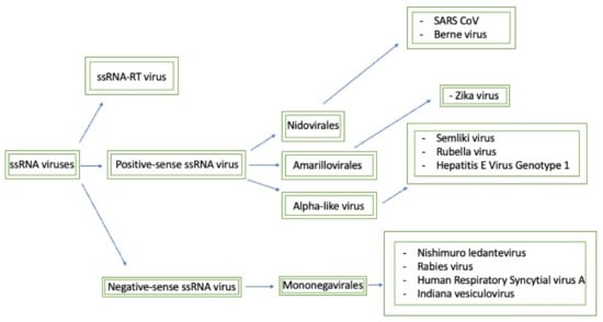 - Rozanov, M.N.; Koonin, E.V.; Gorbalenya, A. Conservation of the putative methyltransferase domain: A hallmark of the ‘Sindbis-like’ supergroup of positive-strand RNA viruses. J. Gen. Virol. 1992, 73, 2129–2134. [Google Scholar] [CrossRef]