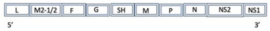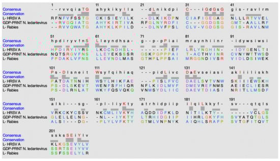 - Liang, B.; Li, Z.; Jenni, S.; Rahmeh, A.A.; Morin, B.M.; Grant, T.; Grigorieff, N.; Harrison, S.C.; Whelan, S.P.J. Structure of the L Protein of Vesicular Stomatitis Virus from Electron Cryomicroscopy. Cell 2015, 162, 314–327. [Google Scholar] [CrossRef] [Green Version]