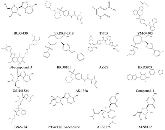 Reported inhibitors of methyltransferases from the mononegavirales order [31].