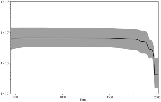 - Rambaut, A.; Drummond, A.J.; Xie, D.; Baele, G.; Suchard, M.A. Posterior summarisation in Bayesian phylogenetics using Tracer 1.7. Syst. Biol. 2018, 67, 901–904. [Google Scholar] [CrossRef] [Green Version]