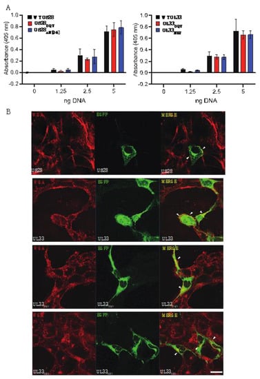 3.1. Expression of Wild Type and Mutated HCMV US28 and UL33 Constructs