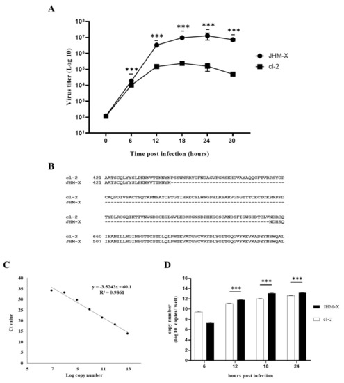 3.1. Virus Growth Comparison and Sequence Difference in the HVR of cl-2 and JHM-X