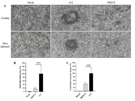 3.3. Fusion Formation Comparison of Spike Proteins Expressed by the Two Strains
