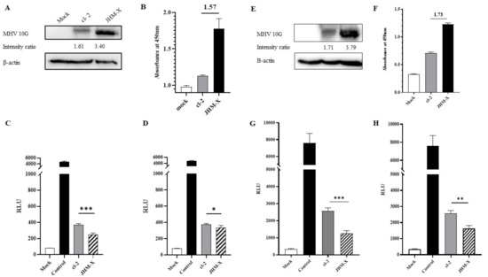- Navas, S.; Seo, S.-H.; Chua, M.M.; Sarma, J.D.; Lavi, E.; Hingley, S.T.; Weiss, S.R. Murine Coronavirus Spike Protein Determines the Ability of the Virus To Replicate in the Liver and Cause Hepatitis. J. Virol. 2001, 75, 2452–2457. [Google Scholar] [CrossRef] [PubMed] [Green Version]