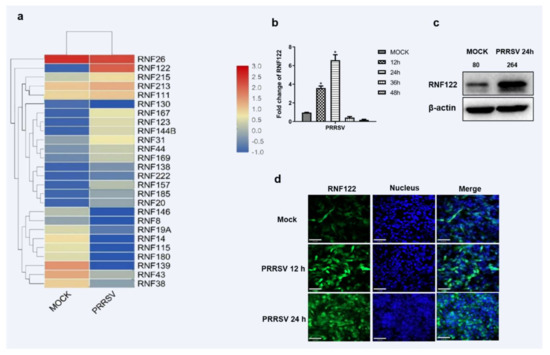 3.1. Porcine E3 Ubiquitin Ligase RNF122 Was Up-Regulated after PRRSV Infection