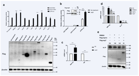 3.4. Transcriptional Regulations of RNF122 Were Mediated by PRRSV nsp1α, nsp7 and nsp9