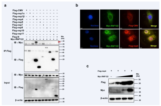 3.6. Interaction between Porcine RNF122 and PRRSV nsp4