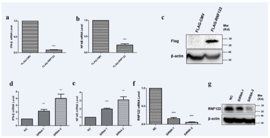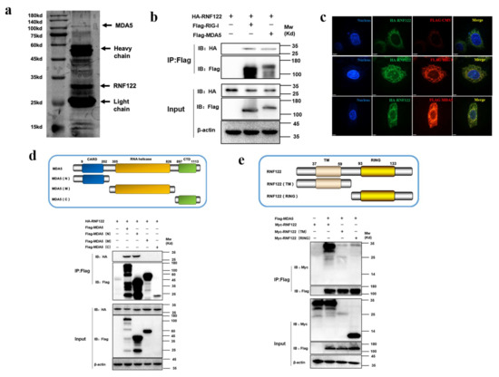 - Wang, W.; Jiang, M.; Liu, S.; Zhang, S.; Liu, W.; Ma, Y.; Zhang, L.; Zhang, J.; Cao, X. RNF122 suppresses antiviral type I interferon production by targeting RIG-I CARDs to mediate RIG-I degradation. Proc. Natl. Acad. Sci. USA 2016, 113, 9581–9586. [Google Scholar] [CrossRef] [PubMed]