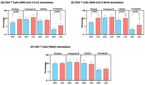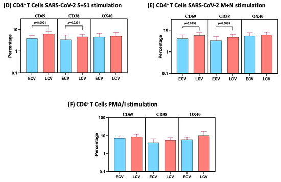 The following supporting information can be downloaded at: https://www.mdpi.com/article/10.3390/v14030511/s1. Figure S1: The frequencies of activation markers were estimated in ECV and LCV individuals upon no stimulation and SARS-CoV-2 antigen stimulation. Each circle represents a single individual and the bars represent the geometric mean values p values were calculated using the Wilcoxon matched pair test; Figure S2: The frequencies of multifunctional cytokines were estimated in ECV and LCV individuals upon no stimulation and SARS-CoV-2 antigen stimulation. Each circle represents a single individual and the bars represent the geometric mean values p values were calculated using the Wilcoxon matched pair test; Figure S3: The frequencies of cytotoxic markers were estimated in ECV and LCV individuals upon no stimulation and SARS-CoV-2 antigen stimulation. Each circle represents a single individual and the bars represent the geometric mean values p values were calculated using the Wilcoxon matched pair test.