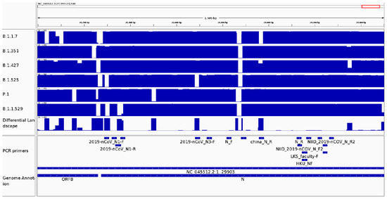 - Park, M.; Won, J.; Choi, B.Y.; Lee, C.J. Optimization of Primer Sets and Detection Protocols for SARS-CoV-2 of Coronavirus Disease 2019 (COVID-19) Using PCR and Real-Time PCR. Exp. Mol. Med. 2020, 52, 963–977. [Google Scholar] [CrossRef]
