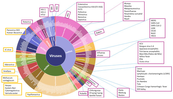 Most human pathogenic viruses in a clock-like classification scheme. Permission kindly provided by Todd N. Wylie; adaptation of Figure 1 of Wylie et al. [52].