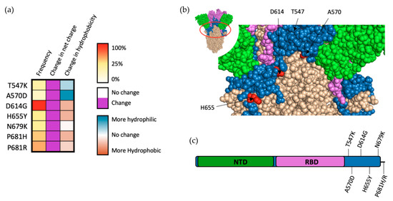 - Korber, B.; Fischer, W.M.; Gnanakaran, S.; Yoon, H.; Theiler, J.; Abfalterer, W.; Hengartner, N.; Giorgi, E.E.; Bhattacharya, T.; Foley, B.; et al. Tracking Changes in SARS-CoV-2 Spike: Evidence that D614G Increases Infectivity of the COVID-19 Virus. Cell 2020, 182, 812–827.e19. [Google Scholar] [CrossRef] [PubMed]