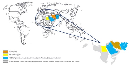 - World Health Organization Regional Office for the Eastern Mediterranean. Available online: http://www.emro.who.int/countries.html (accessed on 15 May 2021).