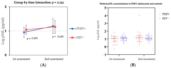 van der Post, J.; van Genderen, J.G.; Heijst, J.A.; Blokhuis, C.; Teunissen, C.E.; Pajkrt, D. Plasma Neurofilament Light Is Not Associated with Ongoing Neuroaxonal Injury or Cognitive Decline in Perinatally HIV Infected Adolescents: A Brief Report. Viruses 2022, 14, 671. https://doi.org/10.3390/v14040671