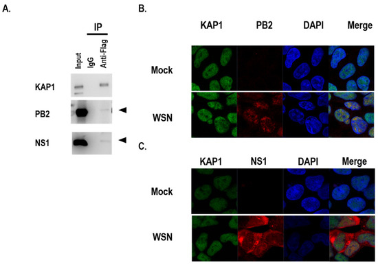 3.3. KAP1 Interacted with PB2 and NS1 Proteins