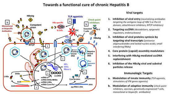 - Fanning, G.C.; Zoulim, F.; Hou, J.; Bertoletti, A. Therapeutic strategies for hepatitis B virus infection: Towards a cure. Nat. Rev. Drug Discov. 2019, 18, 827–844. [Google Scholar] [CrossRef]