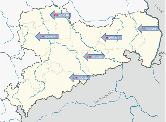 - Location Map Saxony, Germany (Modified for Experimental Background). 2009. Available online: https://de.wikipedia.org/wiki/Datei:Saxony_location_map.svg (accessed on 29 August 2012).