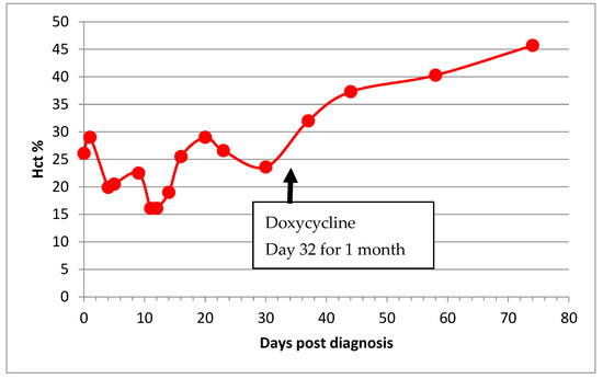- Korman, R.M.; Cerón, J.J.; Knowles, T.G.; Barker, E.N.; Eckersall, P.D.; Tasker, S. Acute phase response to Mycoplasma haemofelis and ‘Candidatus Mycoplasma haemominutum’ infection in FIV-infected and non-FIV-infected cats. Vet. J. 2012, 193, 433–438. [Google Scholar] [CrossRef] [Green Version]