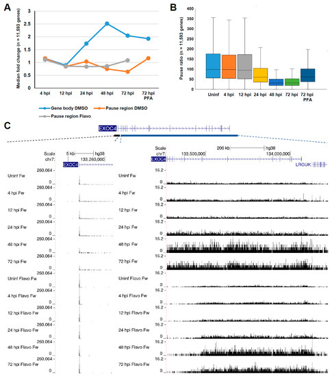 3.2. Late HCMV Infection Is Associated with Increased Rates of Release into Productive Elongation at Host Pol II Genes