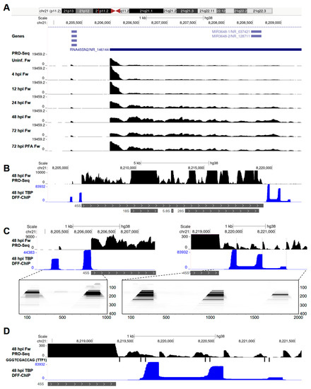 The following are available online at https://www.mdpi.com/article/10.3390/v14040779/s1, Supplementary Figure S1: Motif enrichment analysis in clustered regions, Figure S2: Reproducibility of Pol I transcription profile, Figure S3: Reproducibility of Pol III findings, Figure S4: Schematic depicting the regions protected by DFF-ChIP for TBP at Pol I, Pol II, and Pol III promoters, Supplementary Data File.