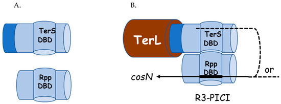 Since TerS is required for the hijacking process, what is TerL’s role in the process? This is puzzling and interesting because TerS is a specific DNA-binding protein whose role is to anchor TerL to the phage’s cos, ensuring accurate nicking of cosN. In hijacking, the Rpp–TerS heterodimer directs TerL away from cos-λ and to cos-PICI. Accordingly, the ability of TerS to bind cos-λ is not used. The TerS-λ DBD also binds DNA non-specifically, so one possible function for TerS might be to bind to PICI DNA non-specifically [9]. At this point, it is not clear whether cos is shaped into a hairpin by Rpp–TerS, nor is it clear whether the Rpp:R3-PICI interaction is sufficient for anchoring TerL for cosN nicking.