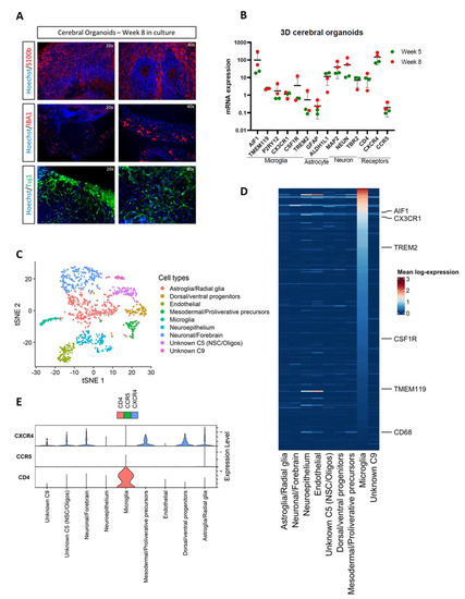 - dos Reis, R.S.; Sant, S.; Keeney, H.; Wagner, M.C.E.; Ayyavoo, V. Modeling HIV-1 neuropathogenesis using three-dimensional human brain organoids (hBORGs) with HIV-1 infected microglia. Sci. Rep. 2020, 10, 1–17. [Google Scholar] [CrossRef]
