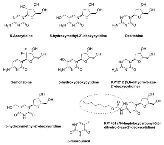 - Rawson, J.M.O.; Daly, M.B.; Xie, J.; Clouser, C.L.; Landman, S.R.; Reilly, C.S.; Bonnac, L.; Kim, B.; Patterson, S.E.; Mansky, L.M. 5-Azacytidine enhances the mutagenesis of HIV-1 by reduction to 5-aza-2′-deoxycytidine. Antimicrob. Agents Chemother. 2016, 60, 2318–2325. [Google Scholar] [CrossRef]