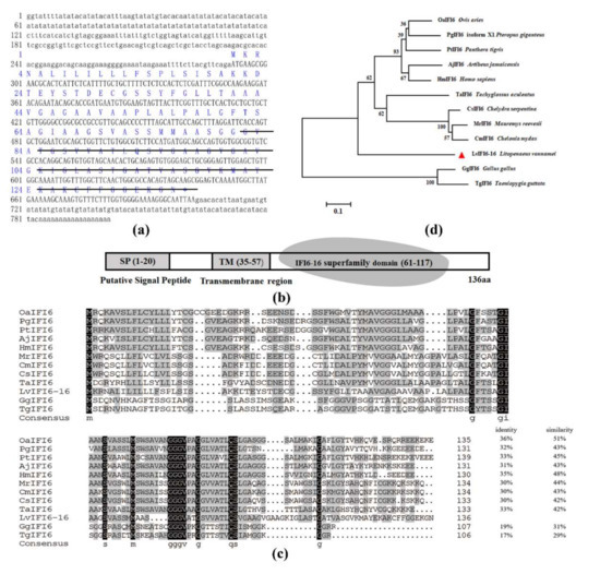 2.2. Sequence and Phylogenetic Analysis of LvIFI6-16