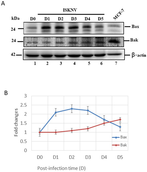 - Chen, X.Y.; Wen, C.M.; Wu, J.L.; Su, Y.C.; Hong, J.R. Giant seaperch iridovirus infection upregulates Bax and Bak expression, leading to apoptotic death of fish cells. Fish Shellfish Immunol. 2015, 45, 848–857. [Google Scholar] [CrossRef]