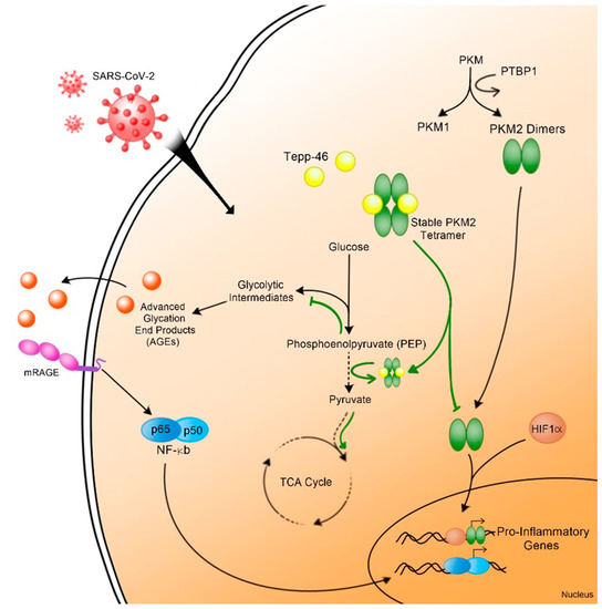 glycolysis; inflammation; metabolic reprogramming; mitochondria; RAGE; SARS-CoV-2; Tepp-46 1. Introduction