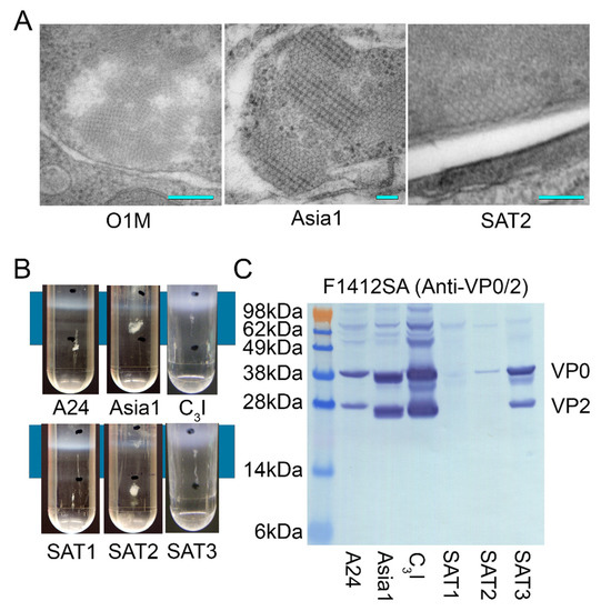 - Breese, S.S., Jr.; Graves, J.H. Electron microscopic observation of crystalline arrays of foot-and-mouth disease virus. J. Bacteriol. 1966, 92, 1835–1837. [Google Scholar] [CrossRef]