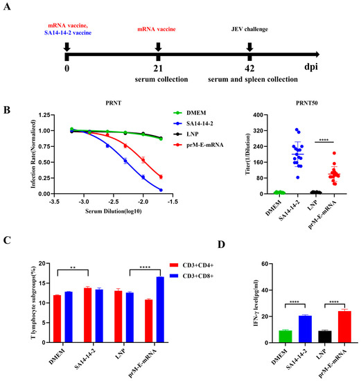3.2. Immunogenicity of the JEV prM-E-mRNA Vaccine