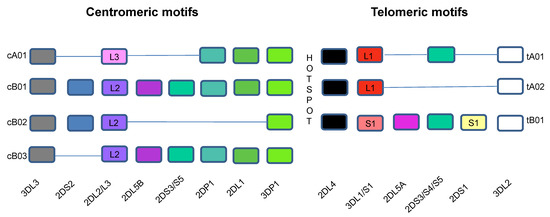 Killer Immunoglobulin-like Receptor Haplotypes. KIR genes are organized into haplotypes A and B. KIR genes shown in the bottom row are designated without “KIR” before their names. The different colors are used to identify different genes. Haplotype A is comprised of four framework genes present in most KIR haplotypes (KIR3DL3 at the centromeric end, KIR3DL2 at the telomeric end and the pseudogene KIR3DP1 and KIR2DL4 in the middle) plus genes encoding inhibitory KIRs KIR2DL1, KIR2DL3, KIR3DL1, activating KIR KIR2DS4 and pseudogene KIR2DP1. The more diverse group B haplotypes include the framework genes with various combinations of genes encoding inhibitory KIRs KIR2DL2 and KIR2DL5A/B and activating KIRs KIR2DS1, KIR2DS2, KIR2DS3, KIR2DS5, and KIR3DS1. More than 90% of the 68 haplotypes that have been sequenced to date using full haplotype multiple-sequence alignments are composed of one of four centromeric and one of three telomeric KIR motifs that include combinations of KIR genes in linkage disequilibrium with each other, which are usually inherited together. The intergenic region between KIR3DP1 and KIR2DL4 is a hotspot between the centromeric and telomeric regions, which allows for frequent recombination between the two regions. The centromeric region is delimited by the framework genes KIR3DL3 and KIR3DP1, while the telomeric region is delimited by framework genes KIR2DL4 and KIR3DL2. KIR2DP1 and KIR2DP1 are pseudogenes. cA01 = genes in the centromeric region of KIR haplotype A 1; cB01 = genes in the centromeric region of KIR haplotype B 1; cB02 = genes in the centromeric region of KIR haplotype B 2; cB03 = genes in the centromeric region of KIR haplotype B 3; tA01 = genes in the telomeric region of KIR haplotype A 1; tA02 = genes in the telomeric region of KIR haplotype A 2; tB01 = genes in the telomeric region of KIR haplotype B 1.
