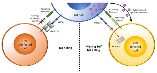- Cohen, G.B.; Gandhi, R.T.; Davis, D.M.; Mandelboim, O.; Chen, B.K.; Strominger, J.L.; Baltimore, D. The selective downregulation of class I major histocompatibility complex proteins by HIV-1 protects HIV-infected cells from NK cells. Immunity 1999, 10, 661–671. [Google Scholar] [CrossRef]