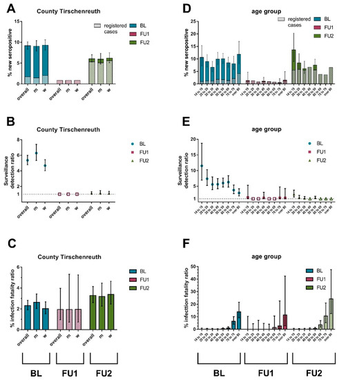 The following are available online at www.mdpi.com/article/10.3390/v14061168/s1: Suppl. Table S1: (Supplement to Table 1) Participant characteristics and dropout analysis. Suppl. Table S2: (Supplement to Table 2). Crude seroprevalence among analyzed participants and changes over time. Suppl. Table S3: (supplement to Figure 3). Standardized (N-based) seroprevalence, surveillance detection ratio (SDR), and infection fatality ratios (IFR) overall and by age groups for Baseline (BL), Follow up 1 (BL to FU1) and Follow up 2 (FU1 to FU2); Suppl. Table S4: (supplement to Figure 3, part 2) Numbers of registered SARS-CoV-2 infections and related death case in the county Tirschenreuth.; Suppl. Table S5: (Supplement to Supplementary Figure S1) Standardized % “ever seropositives”; Suppl. Table S6: Standardized (N-based) period seroprevalence by municipality at Baseline (BL), at FU1 (period between BL and FU1) and FU2 (period between FU1 and FU2).; Suppl. Table S7: Sensitivity analysis of SDRs; Suppl. Table S8: (Supplement to Figure 4) Standardized (N-based) Seroprevalence, SDR and IFR in municipalities with and w/o SCH at Baseline (BL), at FU1 (period between BL and FU1) and FU2 (period between FU1 and FU2).; Suppl. Table S9: (Supplement to Figure 5) Standardized (S-based) period seroprevalence at Baseline (BL), at FU1 (period between BL and FU1) and FU2 (period between FU1 and FU2). Suppl. Figure S1: Cumulative standardized (N-based) Seroprevalence overall and by age groups for Baseline (BL), Follow up 1 (FU1) and Follow up 2 (FU2).