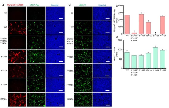 3.2. The Role of Y146 and Y141 in the Transporter and Receptor Function of NTCP