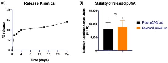 The size distribution and zeta potential of QAC-NPs in aqueous dispersion was measured by dynamic light scattering (DLS) on a Malvern Zetasizer instrument at 25 °C. For size distribution, 10 ul of QAC-NPs in solution was diluted to 3 mL using nuclease-free water and placed in a low volume cuvette and analyzed directly. For the zeta potential measurement, approximately 1 mL of the diluted QAC-NPs in solution was placed in a disposable capillary zeta potential cell that was available from the Zetasizer Nano series. For the release kinetics assay, QAC NPs loaded with 50 ug total DNA was resuspended in 50 µL of 0.05 M phosphate-buffered saline (PBS, pH 7.4) at 37 °C in duplicates. At each time point, the suspensions were removed and centrifuged at 14,000 rcf for 20 min. The supernatant was removed and replaced with PBS and returned to incubation. The supernatant samples were quantified for released DNA from the QAC using a GE Healthcare/Amersham Biosciences Ultrospec 3100 Pro UV/Visible Spectrophotometer and compared to the total DNA that was used. For the delivery experiment, pQAC-Luc was added to HEK 293T cells in 96-well plate format at different DNA amounts listed. At 72 h post addition, the cells were lysed, and luciferase activity was measured using the ONE-Glo™ Luciferase Assay System (Promega, Madison, WI, USA). RLU were measured using the TD 20/20 Luminometer (Turner Designs, San Jose, CA, USA). For stability studies, HEK 293T cells seeded in 96-well format were transfected with fresh or released pCAG-Luc in the supernatant (24 h) from the release kinetics assay using TransIT®-293 Transfection Reagent, according to the manufacturer’s instructions (Mirus Bio, Madison, WI, USA). Three days post-transfection the cells were lysed and luciferase activity was measured using the ONE-Glo™ Luciferase Assay System (Promega, Madison, WI, USA). RLU were measured using the TD 20/20 Luminometer (Turner Designs, San Jose, CA, USA).