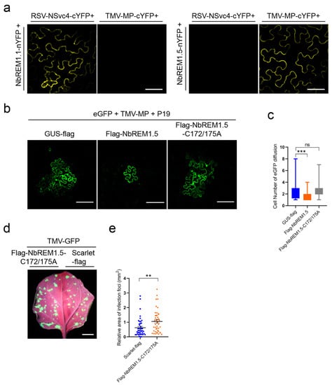3.4. NbREM1.5 Negatively Regulates TMV Cell-to-Cell Movement
