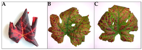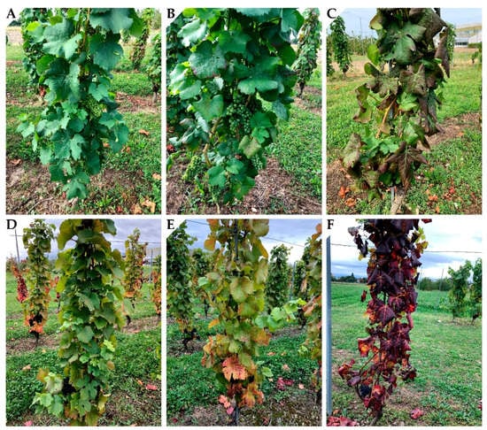 - Moutinho-Pereira, J.; Correia, C.; Gonçalves, B.; Bacelar, E.; Coutinho, J.; Ferreira, H.M.F.; Lousada, J.; Cortez, I. Impacts of leafroll-associated viruses (GLRaV-1 and -3) on the physiology of the Portuguese grapevine cultivar ‘Touriga Nacional’ growing under field conditions. Ann. Appl. Biol. 2012, 160, 237–249. [Google Scholar] [CrossRef]