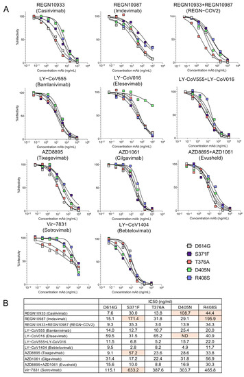 3.3. Antibody Interaction Sites on the Spike Protein Explain Resistance or Sensitivity to Monoclonal Antibody Neutralization