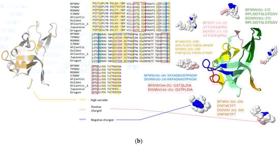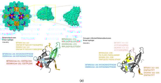 - Costa, J.; Adams, A.; Bron, J.; Thompson, K.; Starkey, W.; Richards, R. Identification of B-cell epitopes on the betanodavirus capsid protein. J. Fish Dis. 2007, 30, 419–426. [Google Scholar] [CrossRef]