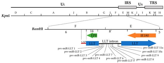 - Jin, L.; Schnitzlein, W.M.; Scherba, G. Identification of the Pseudorabies Virus Promoter Required for Latency-Associated Transcript Gene Expression in the Natural Host. J. Virol. 2000, 74, 6333–6338. [Google Scholar] [CrossRef]
