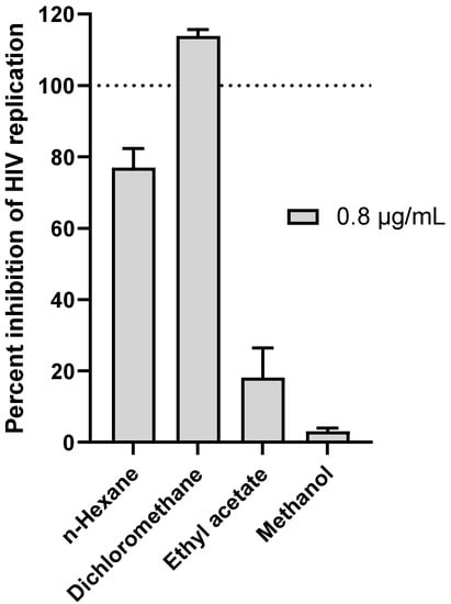 3.1. Anti-HIV Activity of G. Sericocephala Extracts