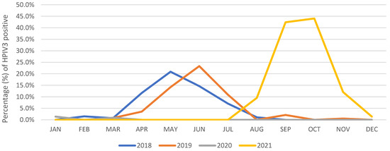 HPIV3 Epidemiology in Gwangju area, South Korea, from 2018 to 2021.