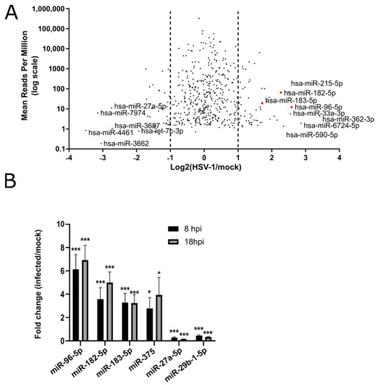 3.1. miR-183/96/182 Cluster Is Upregulated in HSV-1 Infected Primary HFFs