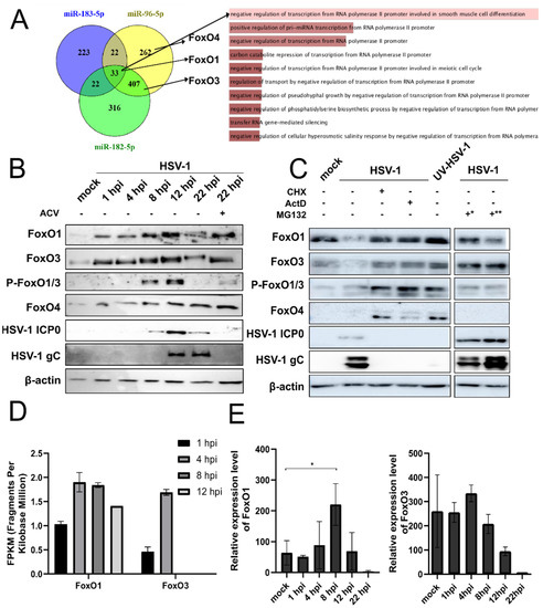 The Virus-Induced Upregulation of the miR-183/96/182 Cluster and the FoxO Family Protein Members Are Not Required for Efficient Replication of HSV-1
