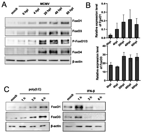 3.4. Poly (I:C), IFN-β Treatment, and Infection with Other Herpesviruses Increase the Level of FoxO1 and FoxO3 Proteins