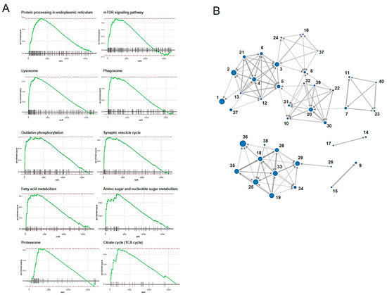 GSEA was performed using the result of RNA-seq. In total, 43 pathways were determined to be significantly altered in the CRFK cells sensitized with fADSC-CM compared with pathways in the mock CRFK cells (Table 6). Figure 10 shows a RUG plot of the top 10 pathway and network functions.