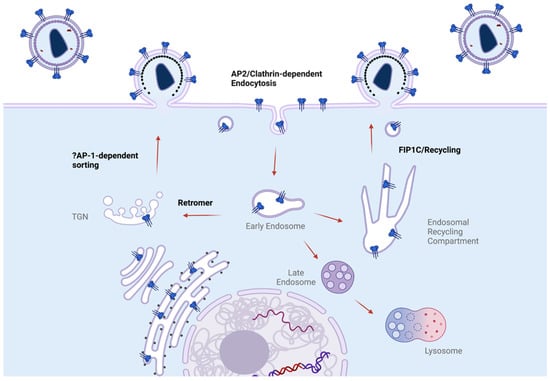 envelope glycoprotein; Gag protein; recycling; endocytosis; AP-2 complex; AP-1 complex; Rab11-FIP1C; retromer 1. Introduction